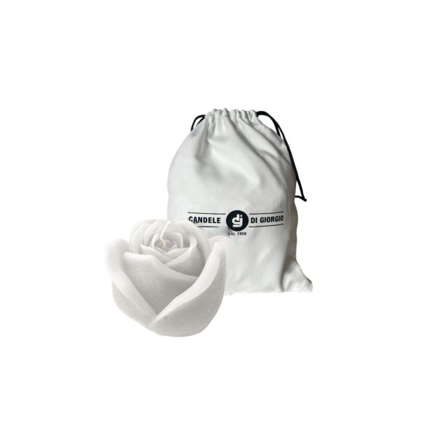 Candela a forma di Bocciolo di Rosa - Colore Bianco - Diametro 8 cm altezza 8 cm - con Sacchetto Regalo