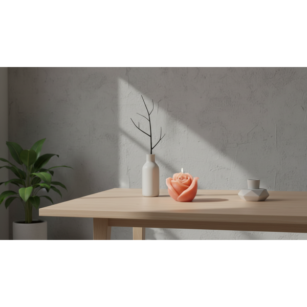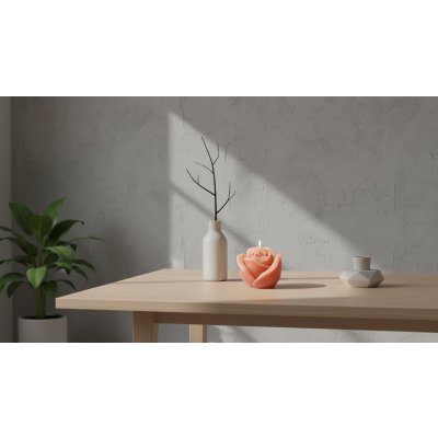 Candela a forma di Bocciolo di Rosa - Colore Rosa Polvere - Diametro 8 cm altezza 8 cm - con Sacchetto Regalo