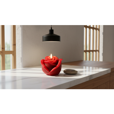 Candela a forma di Bocciolo di Rosa - Colore Rosso - Diametro 8 cm altezza 8 cm - con Sacchetto Regalo