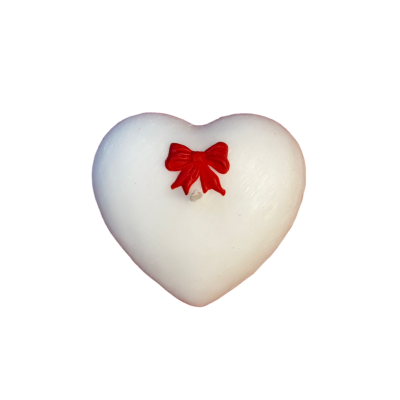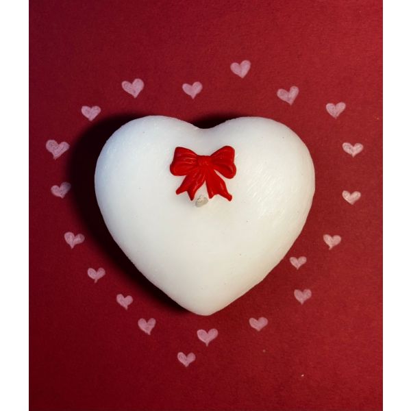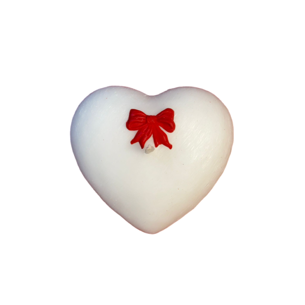 Candela a forma di Cuore Graffiato - Bianco- con fiocco Rosso - 10x5 cm