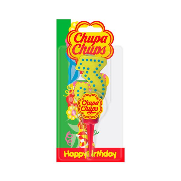 Candela compleanno Chupa Chups Numero 3 con supporto