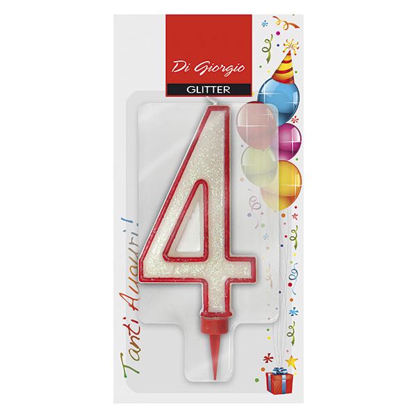 Candela di compleanno Gigante con glitter numero 4