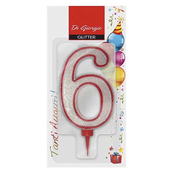 Candela di compleanno Gigante con glitter numero 6