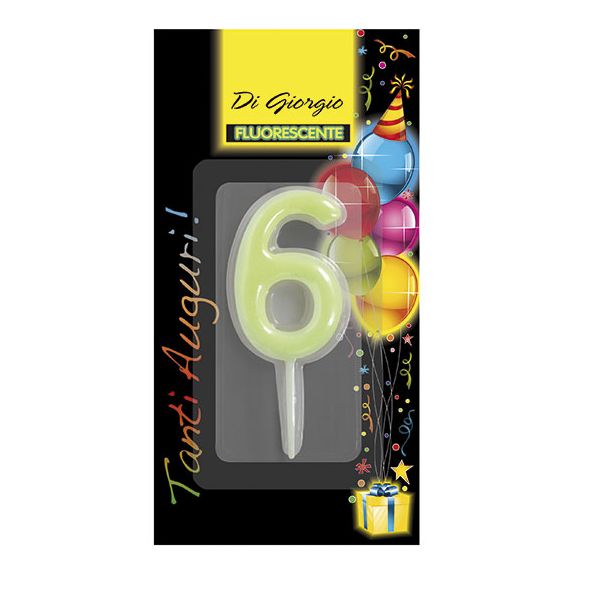 Candela di complenno numero 6 fosforescente con supporto