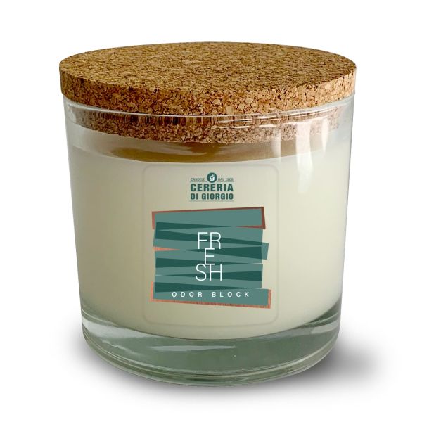 Candela Vegetale Vegana in bicchiere con coperchio in sughero Odor Block - Fresh- 50 ORE
