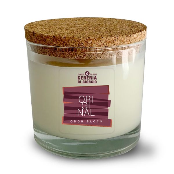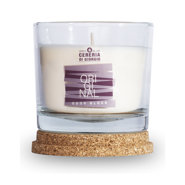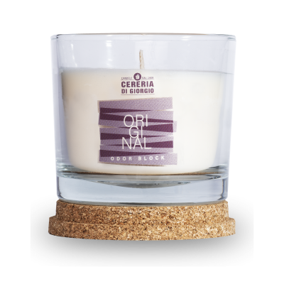 Candela Vegetale Vegana in bicchiere con coperchio in sughero Odor Block - Original- 50 ORE