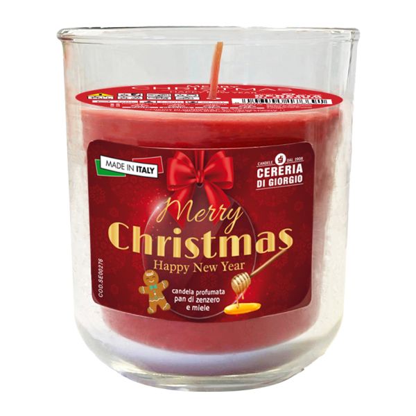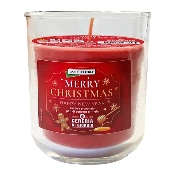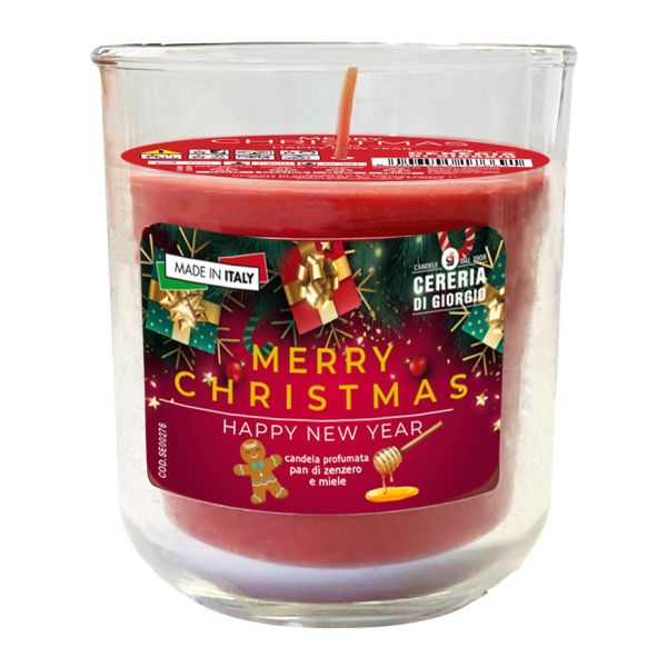 Candela in bicchiere diam. 8 cm h. 8,9 cm profumata al miele e pan di zenzero - Merry Christmas