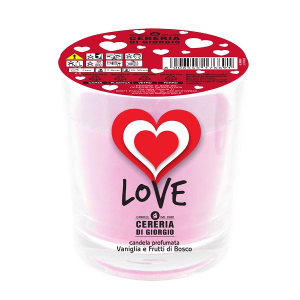 Candela in bicchiere profumata alla vaniglia e frutti di bosco - LOVE
