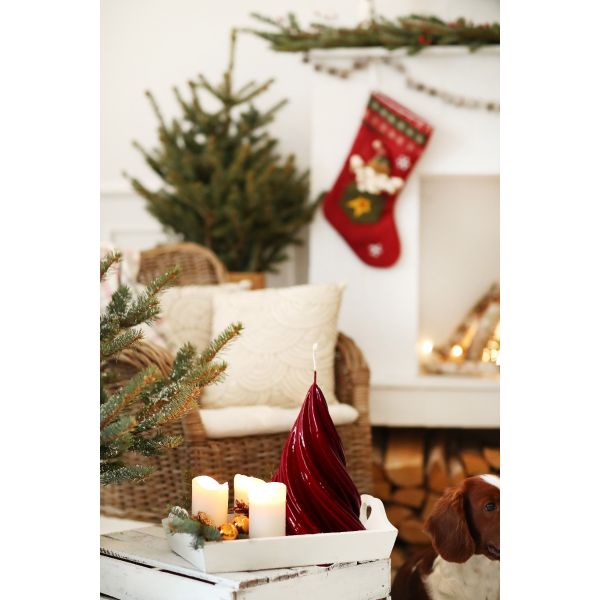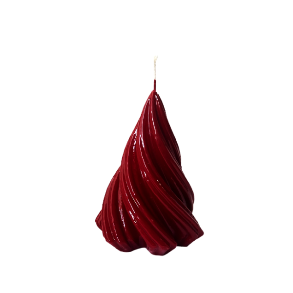 Candela laccata Albero di Natale artigianale- Bordeaux- Altezza 13 cm