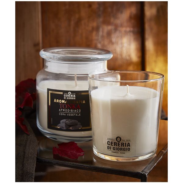 Candela Vegetale Vegana profumata in bicchiere Aromaterapia - Tonka - 44 ORE