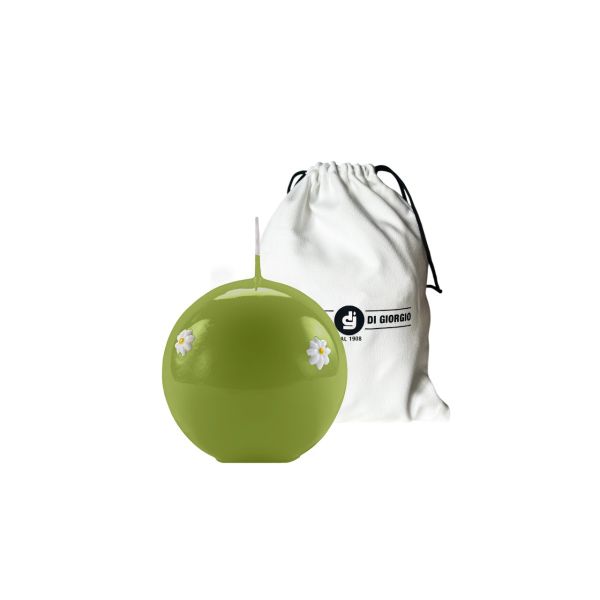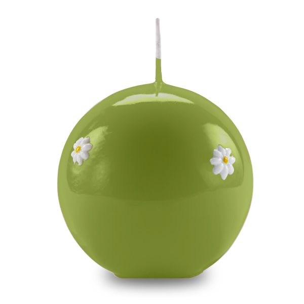 Candela sfera artigianale Ø 10 cm con margherite - Pistacchio