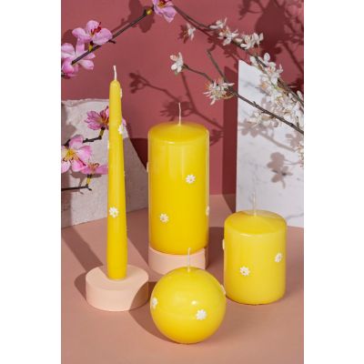 Candela sfera artigianale Ø 10 cm con margherite - Rosa Polvere