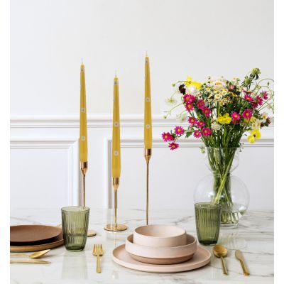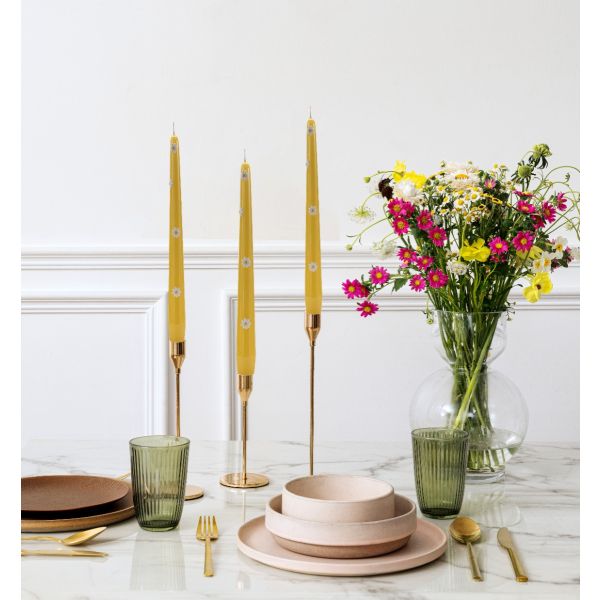 Candele coniche con Margherite Ø 2,2 cm h. 25 cm 2 pezzi -Senape