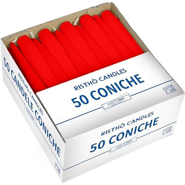 Candele coniche Ø 2,2 cm h. 21 cm 50 pezzi - Rosso