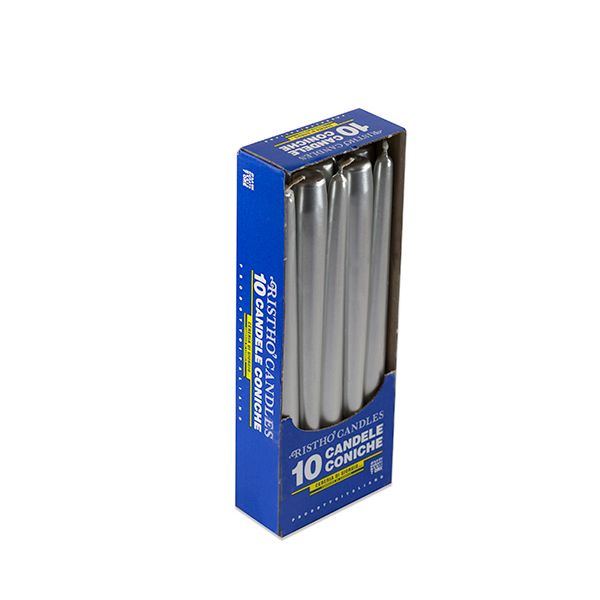 Candele coniche Ø 2,2 cm h. 25 cm 10 pezzi - Argento