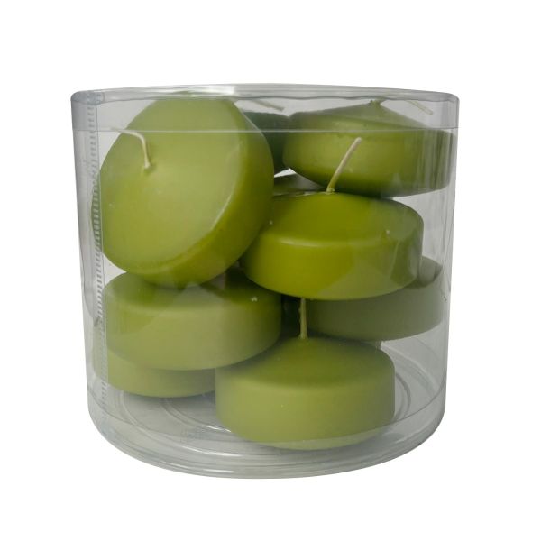 Candele galleggianti Ø 7 cm h. 1,5 cm 12 pezzi -Verde Oliva
