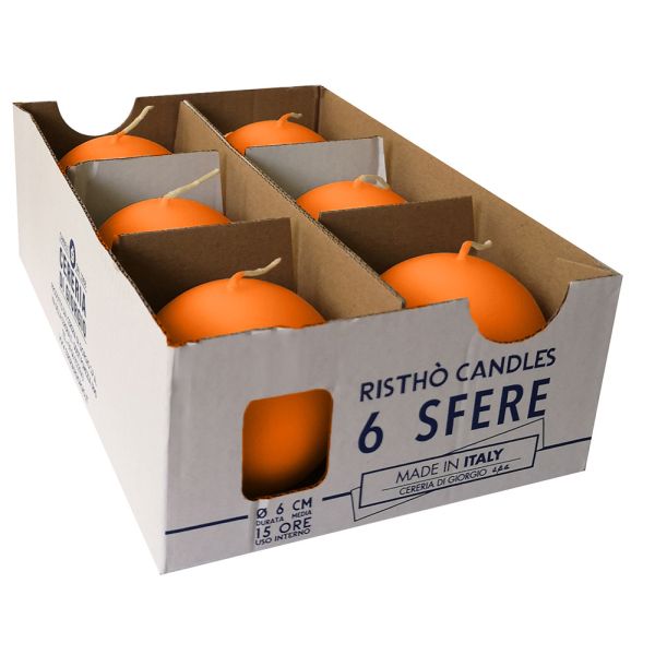 Candele sfera Ø 6 cm 6 pezzi - Arancio