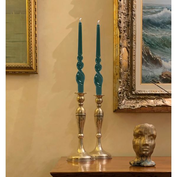 Set 2 candele voluta laccate h 40 cm -Verde Scuro
