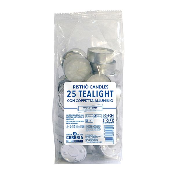 Tealight Ø 3,6 cm h. 1,7 cm 25 pezzi - Durata 3 ore
