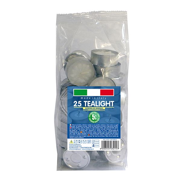 Tealight Ø 3,6 cm h. 1,7 cm 25 pezzi - Durata 5 ore